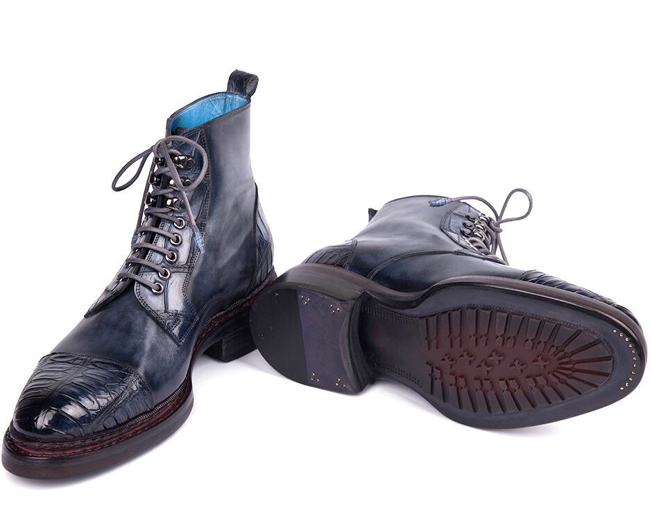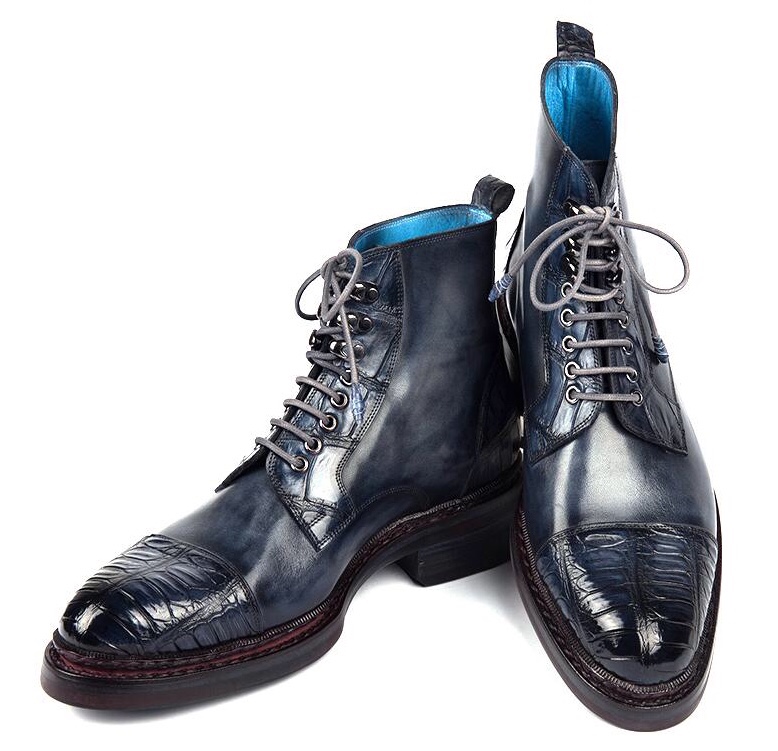 Paul Parkman Genuine Crocodile & Calfskin Captoe Boots Navy