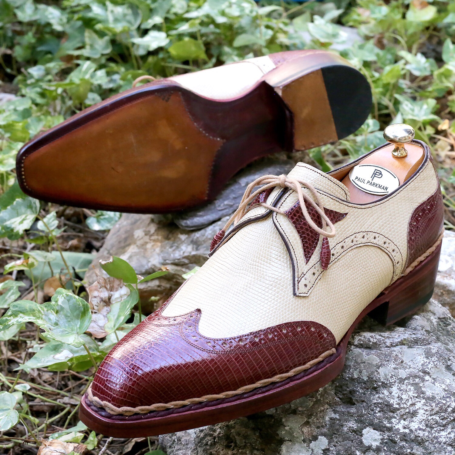 • Brown & cream genuine iguana skin upper.