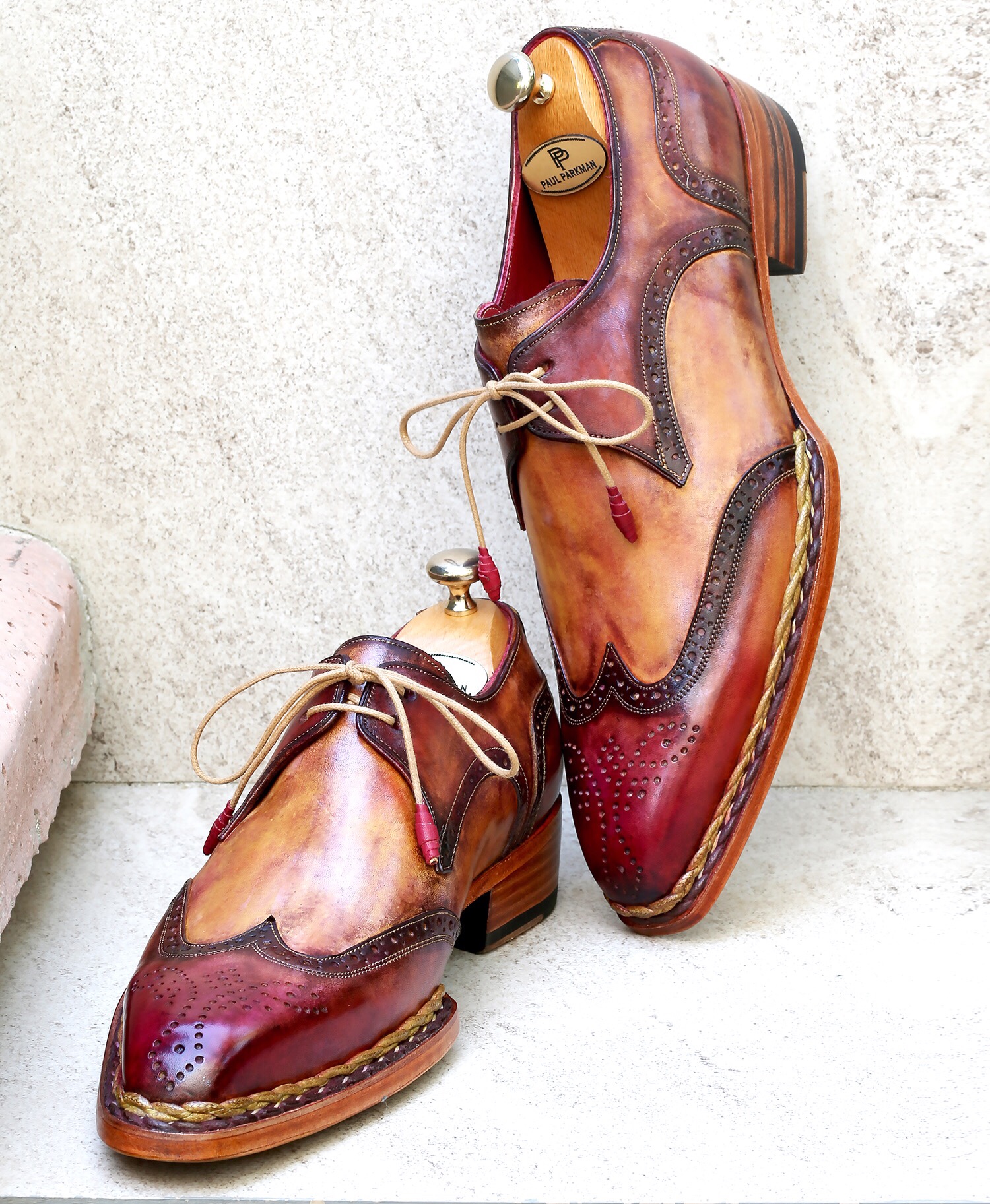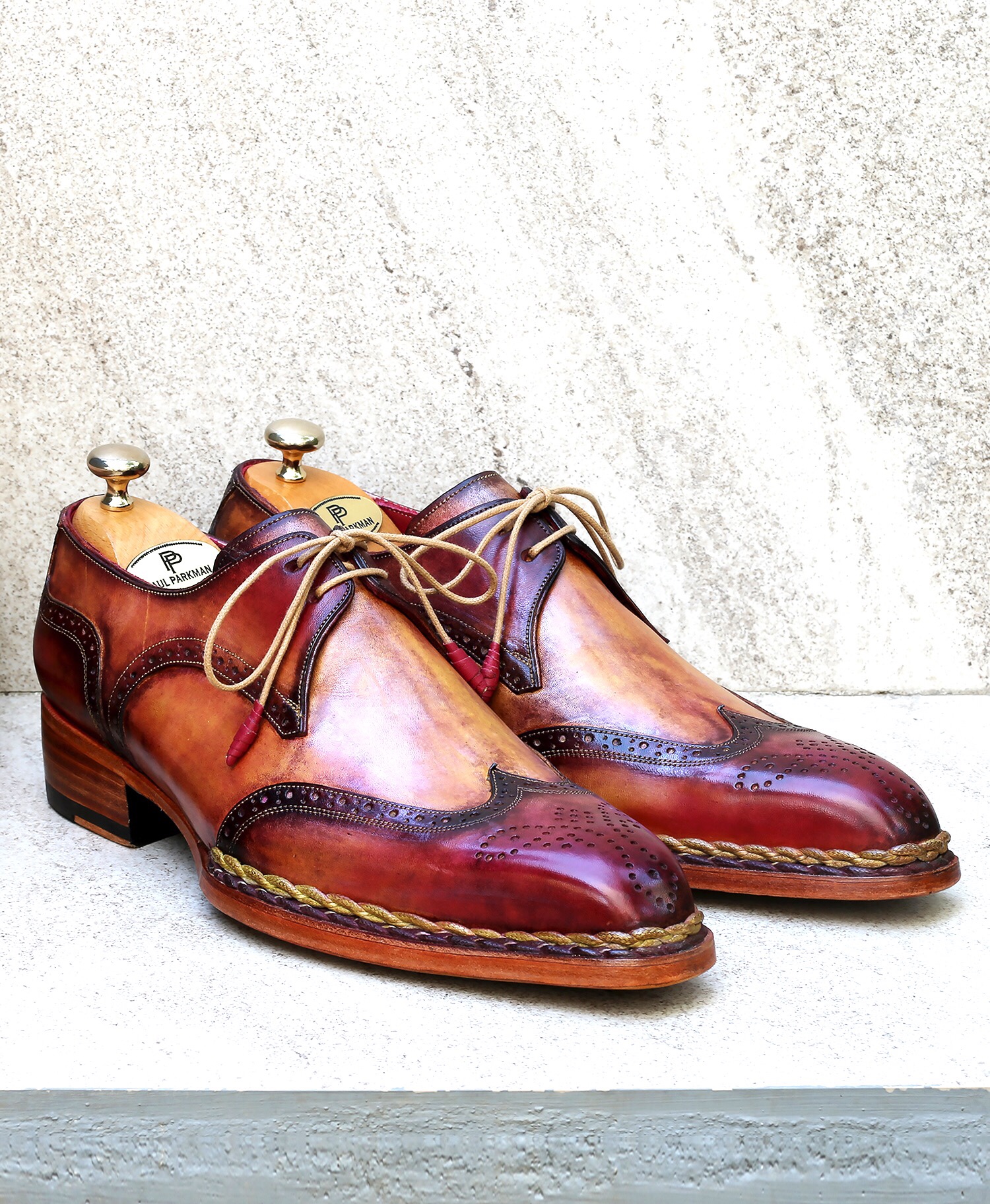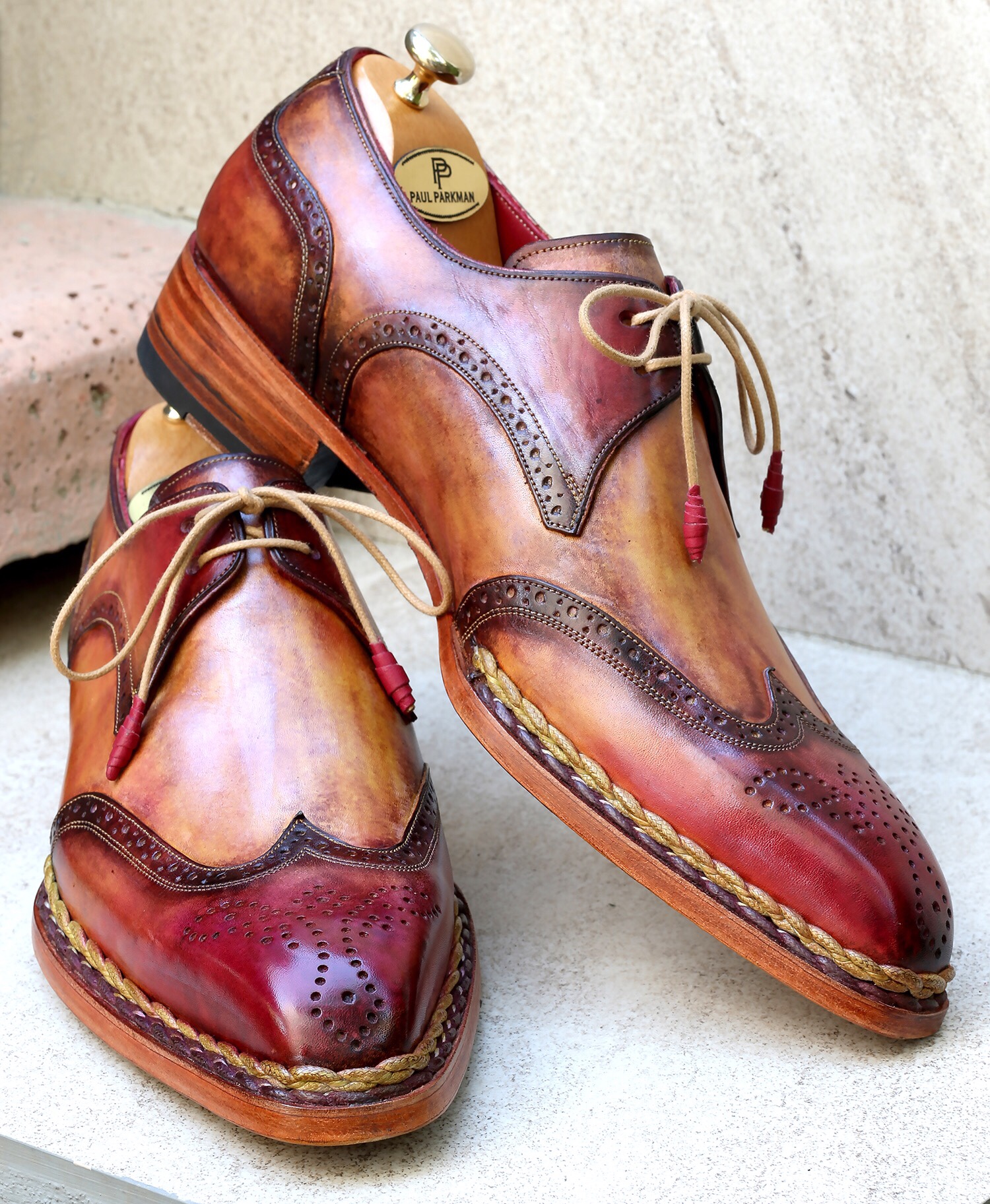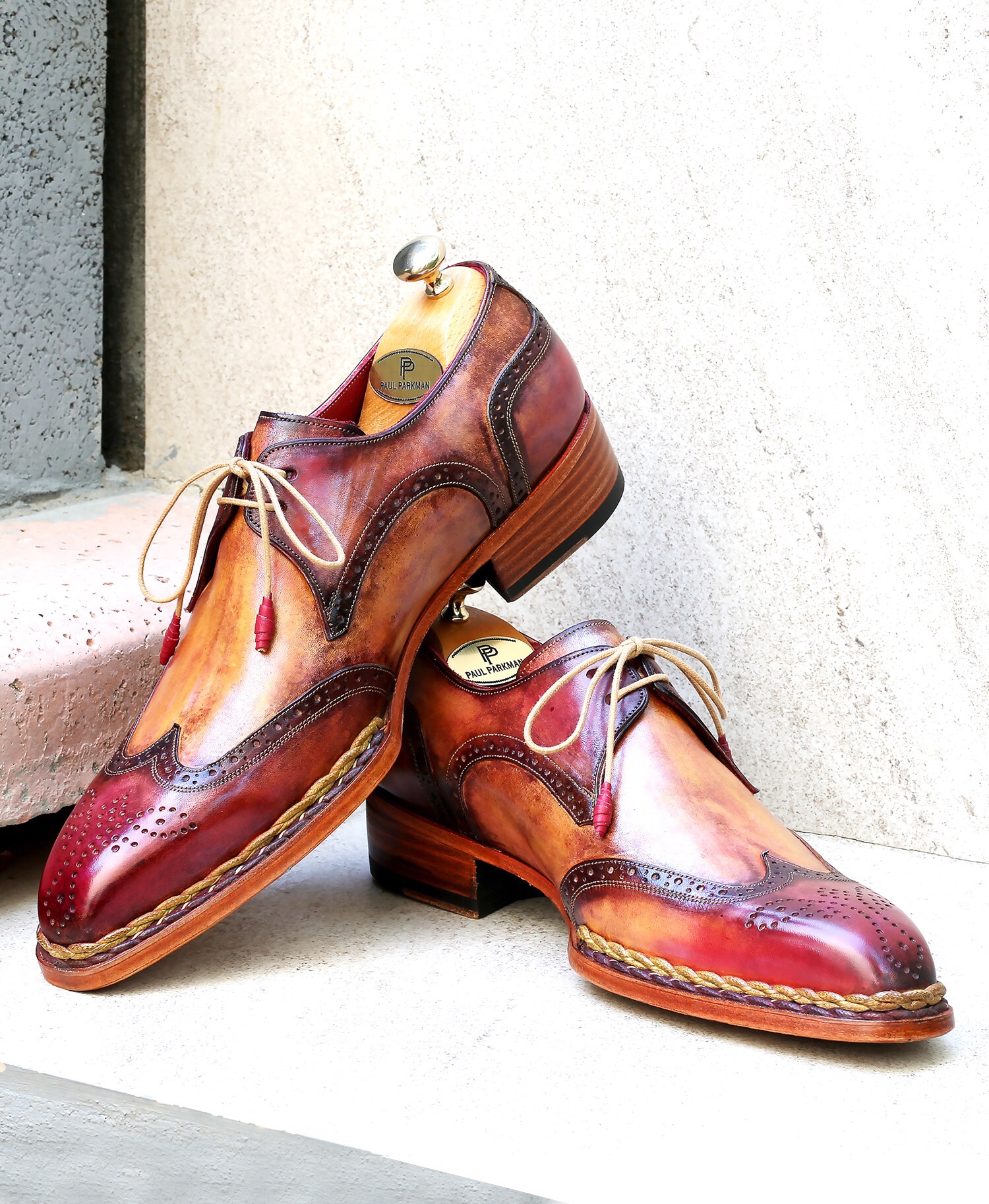 Paul Parkman Norwegian Welted Wingtip Derby Shoes Red & Camel
