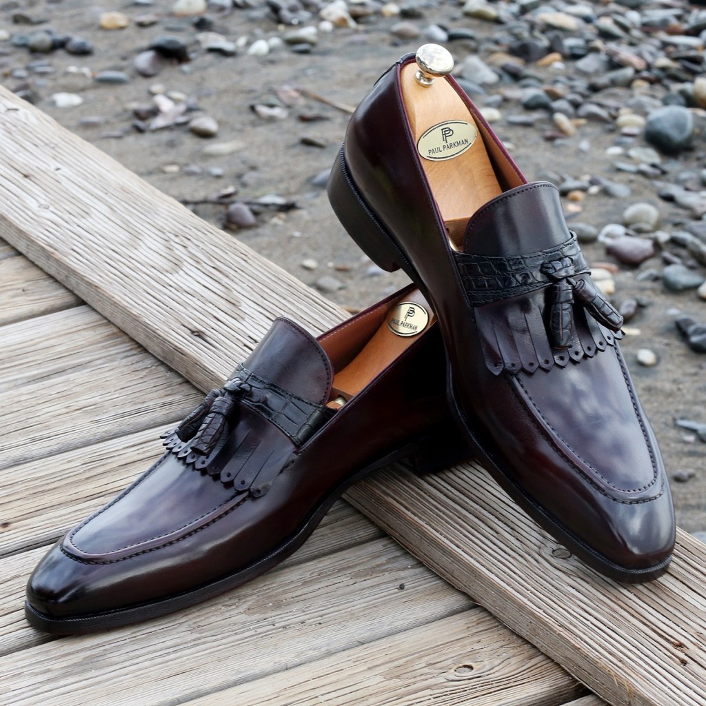 Paul Parkman Dark Bordeaux Calfskin & Genuine Crocodile Tassel Loafers
