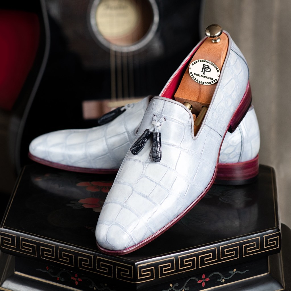 Paul Parkman Men’s Grey Genuine Crocodile Tassel Loafers