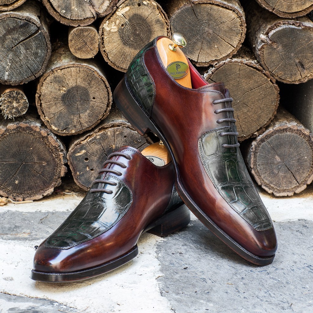 Paul Parkman Men’s Green Genuine Crocodile & Brown Calfskin Oxfords