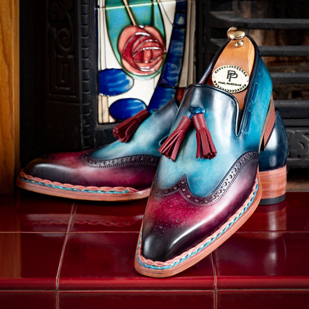 • Blue and purple hand-painted leather upper.