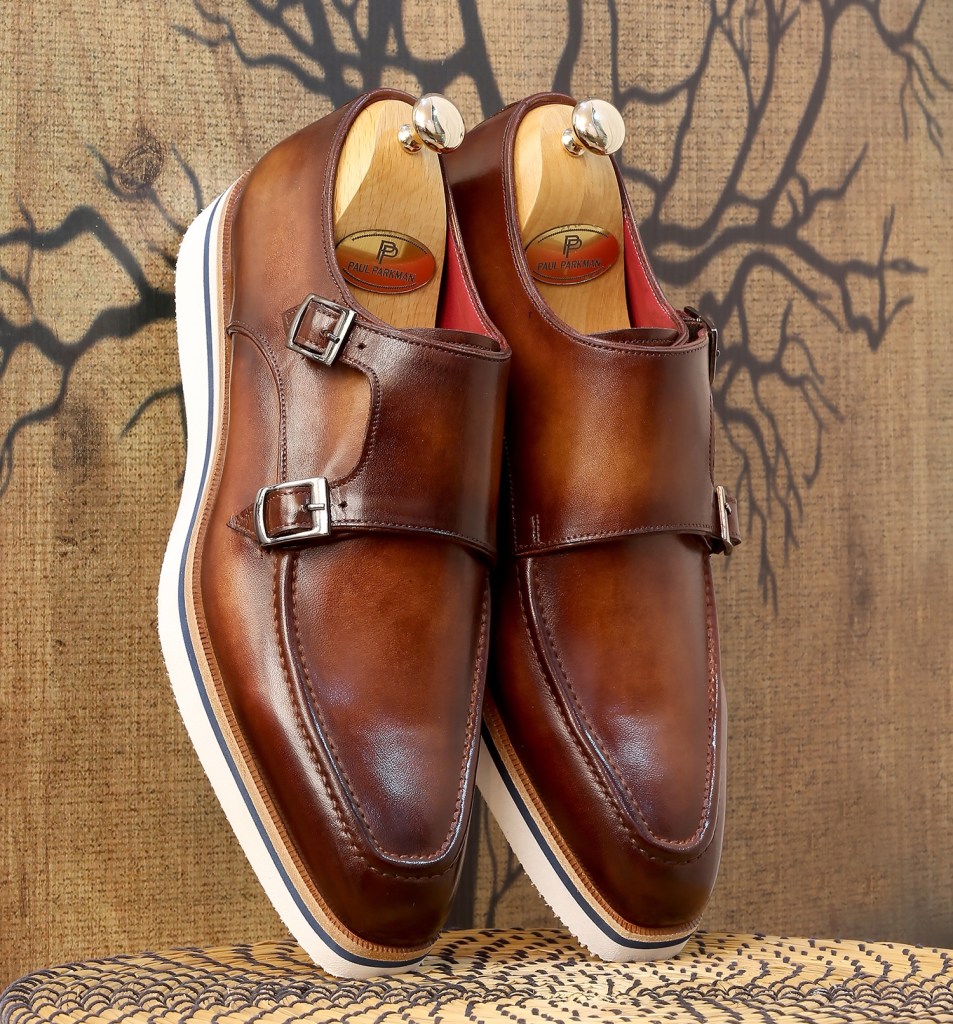 Paul Parkman Men’s Smart Casual Monkstrap Shoes Brown Leather