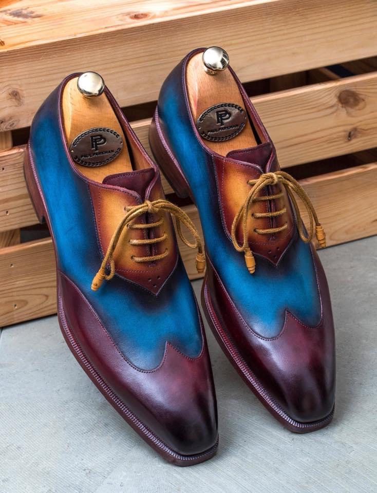 Paul Parkman Three Tone Wingtip Oxfords Bordeaux & Blue & Camel