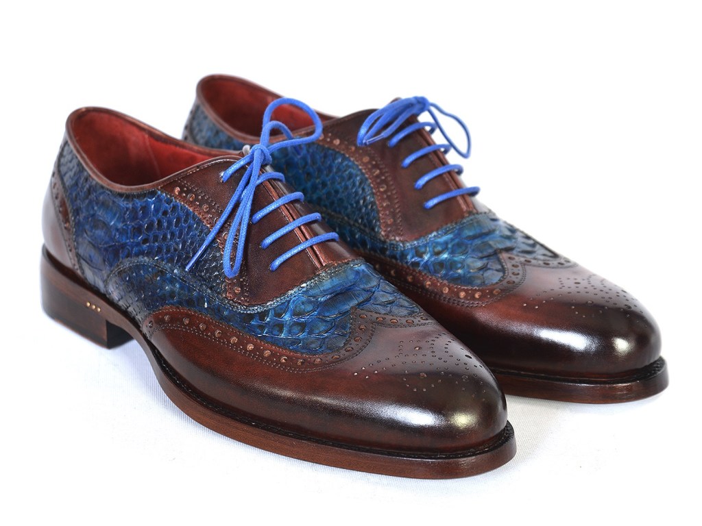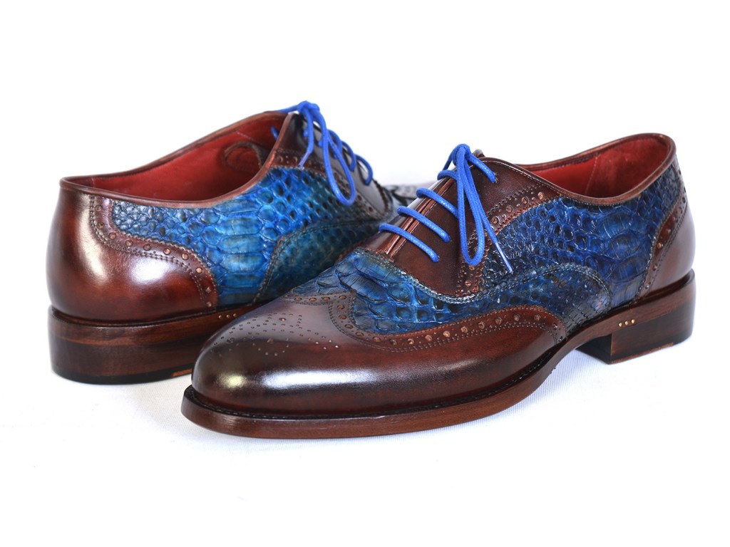 Paul Parkman Goodyear Welted Blue Genuine Python & Brown Calfskin Wingtip Oxfords