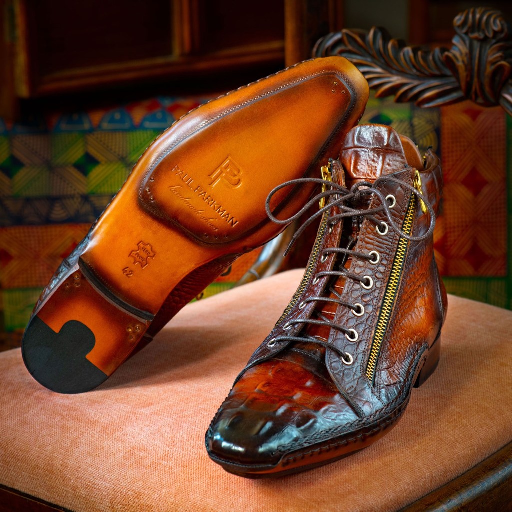 Paul Parkman Crocodile Textured Calfskin Handmade Zipper Boots