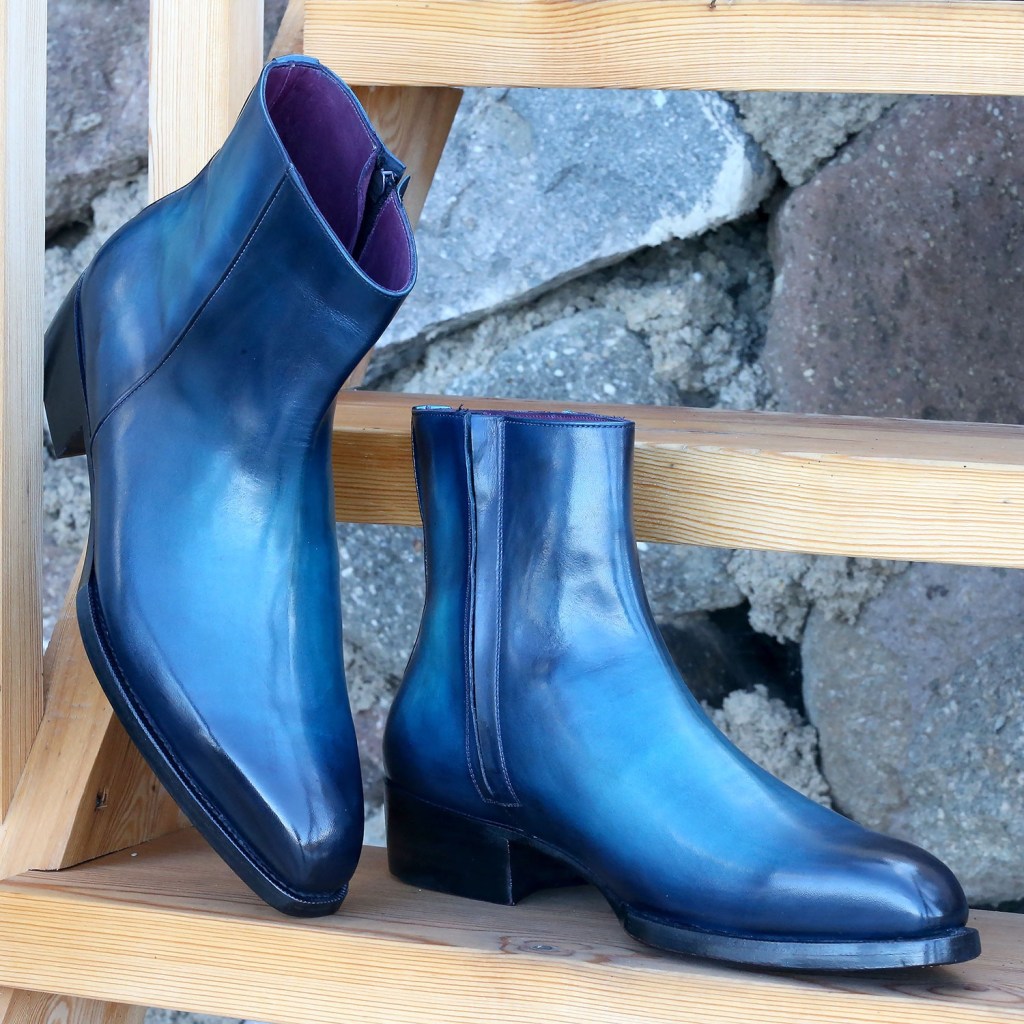 Paul Parkman Blue Burnished Side Zipper Boots Goodyear Welted