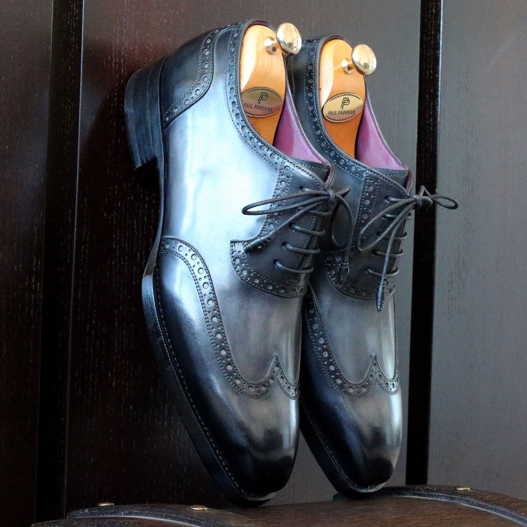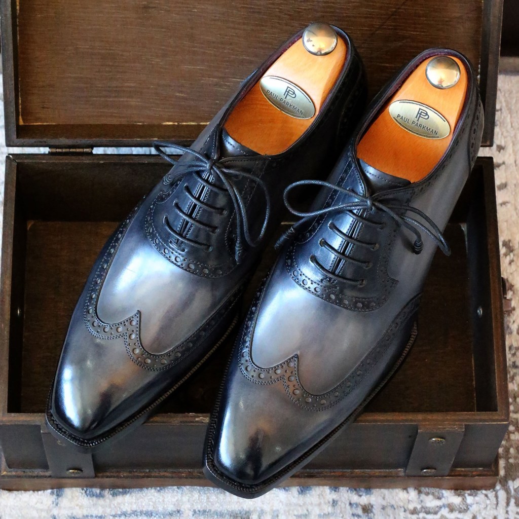 Paul Parkman Goodyear Welted Men’s Wingtip Oxfords Black & Gray