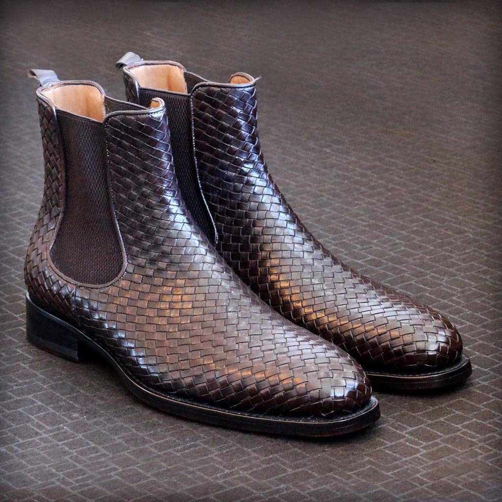 Paul Parkman Chocolate Brown Woven Leather Chelsea Boots