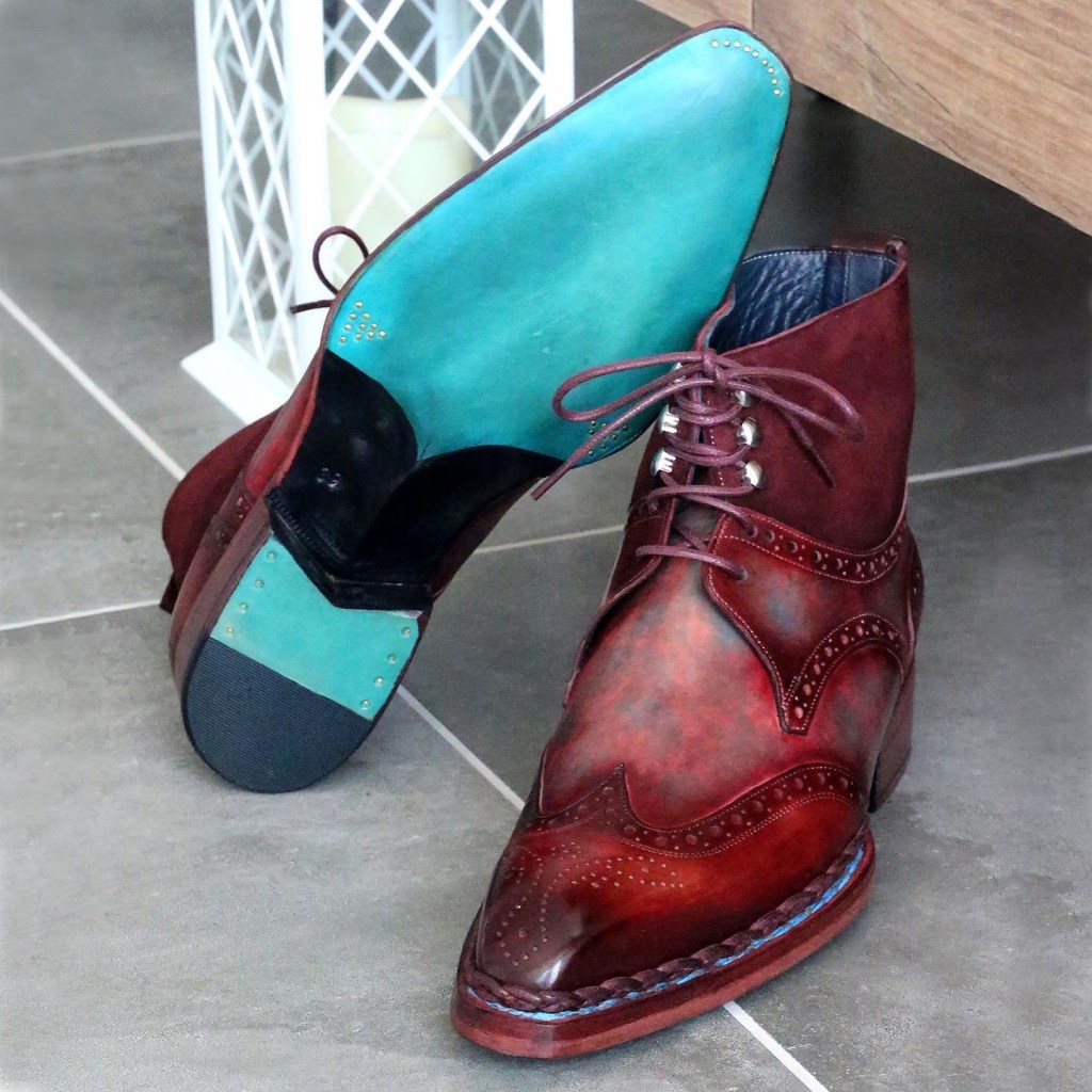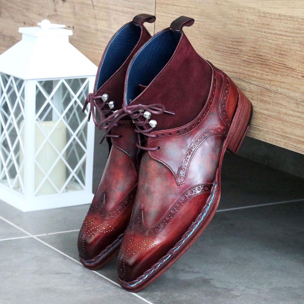 • Burgundy patina leather and suede upper.
