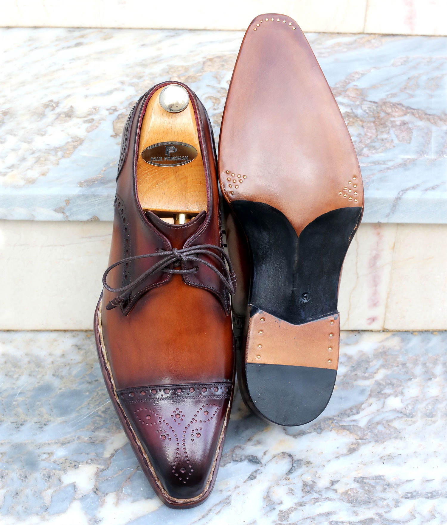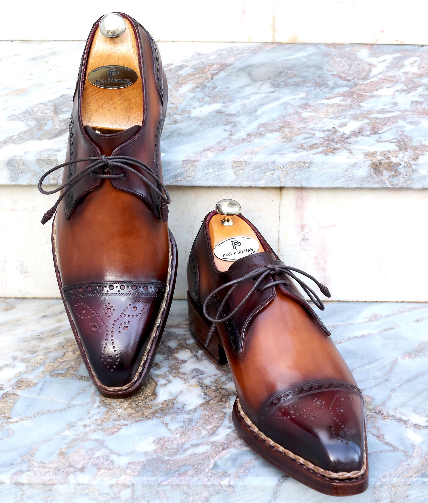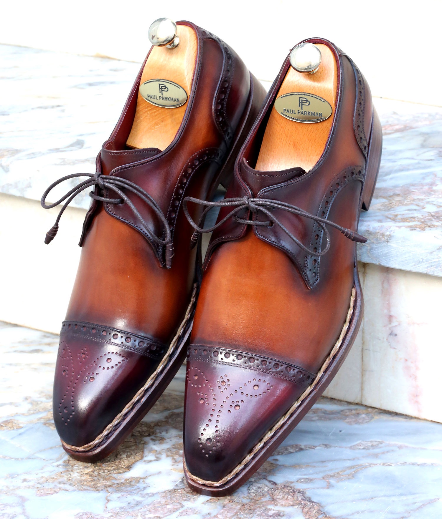 Paul Parkman Norwegian Welted Cap Toe Derby Shoes Bordeaux & Brown
