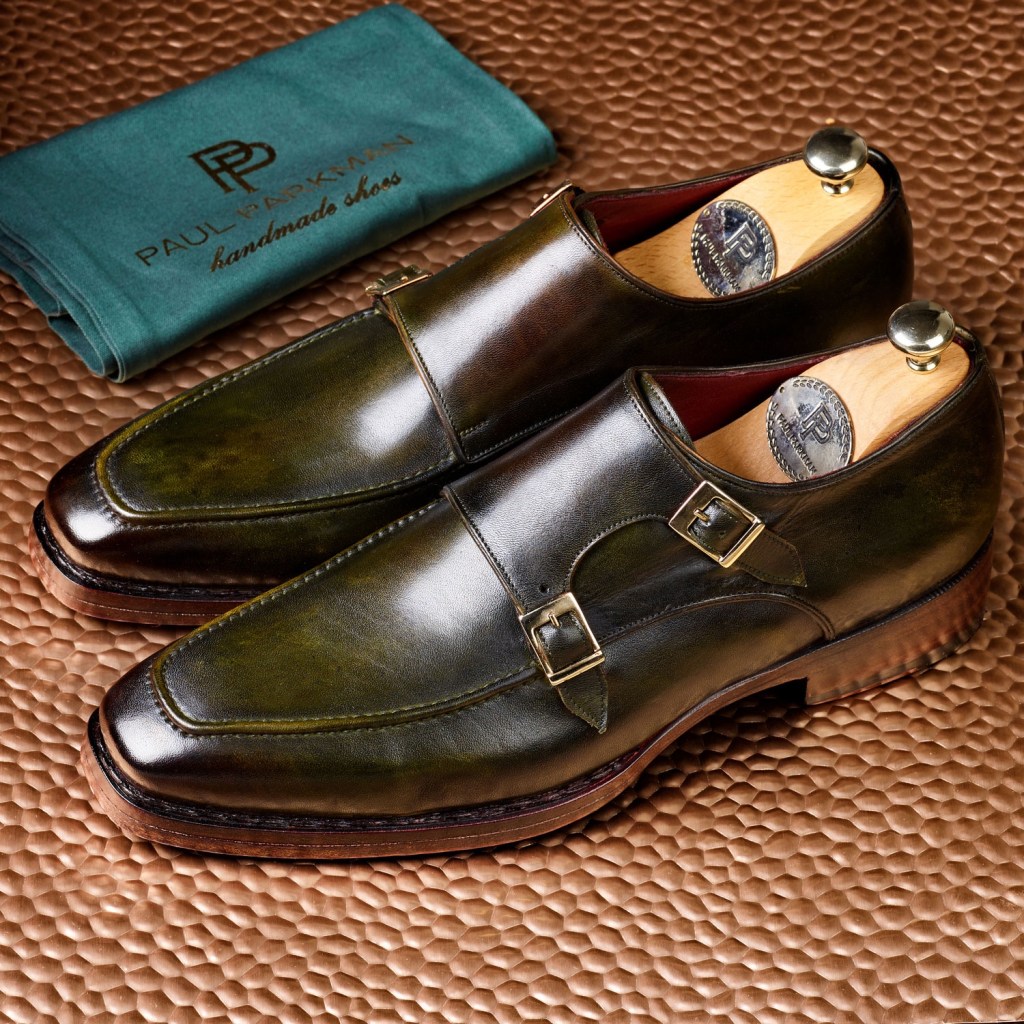Paul Parkman Men’s Double Monkstrap Goodyear Welted Shoes Green