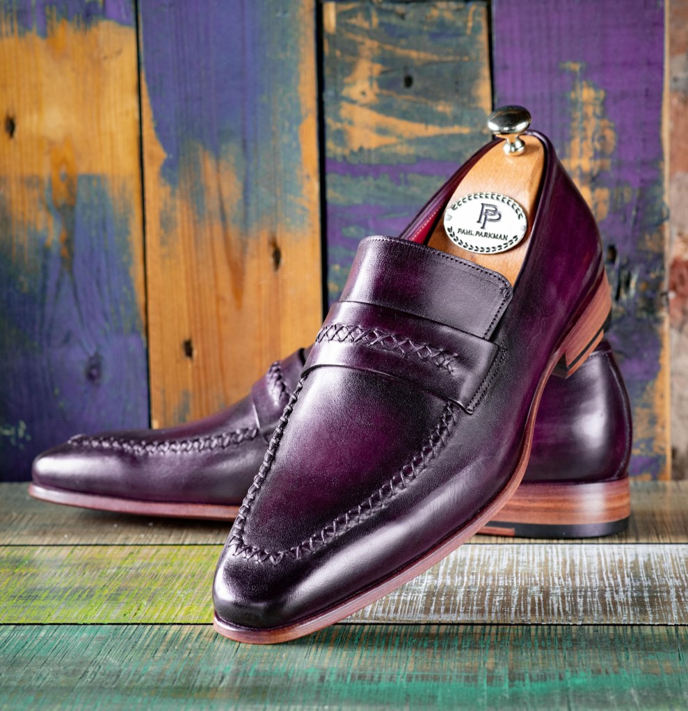 Paul Parkman Men’s Purple Loafers Handmade Slip-On Shoes
