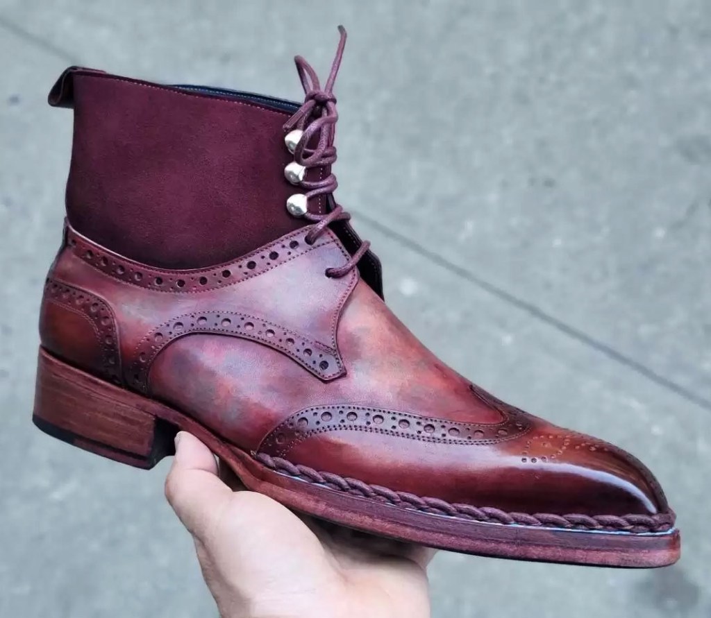 Paul Parkman Men’s Norwegian Welted Wingtip Leather and Suede Boots