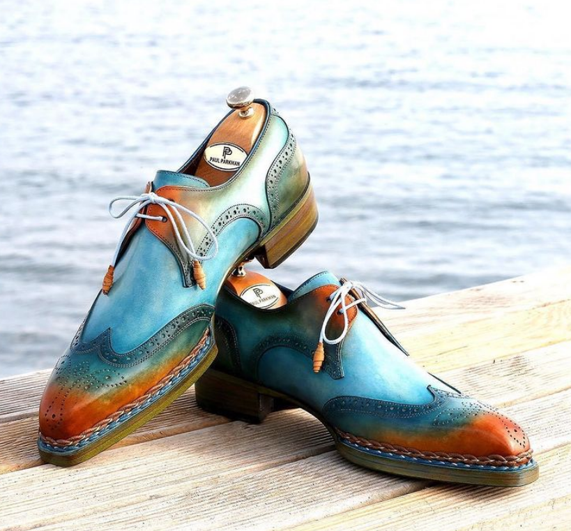 Paul Parkman Norwegian Welted Wingtip Derby Shoes Turquoise & Tobacco