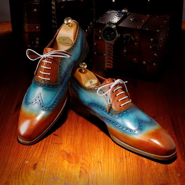 Paul Parkman Men’s Wingtip Oxford Shoes Turquoise & Tobacco