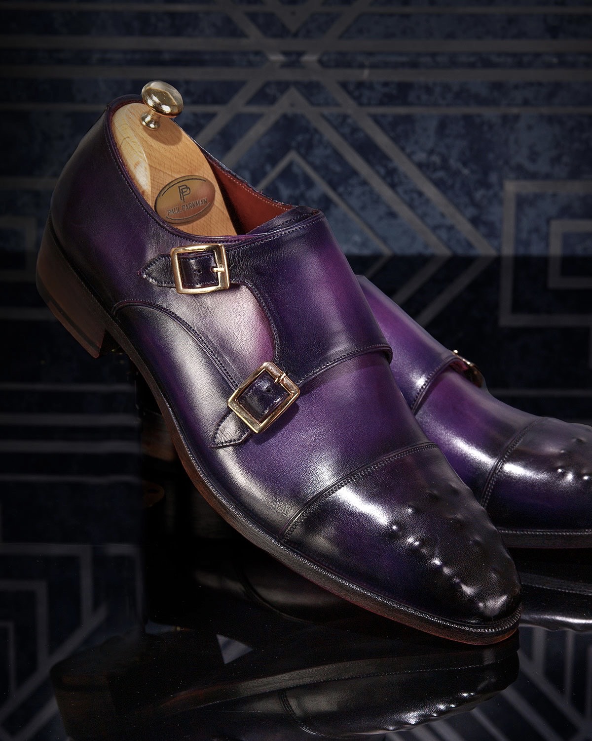 Paul Parkman Men’s Studded Cap Toe Monkstraps Purple