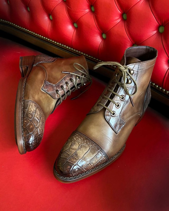 Paul Parkman Custom-Made Crocodile Cap Toe Leather Boots for Men