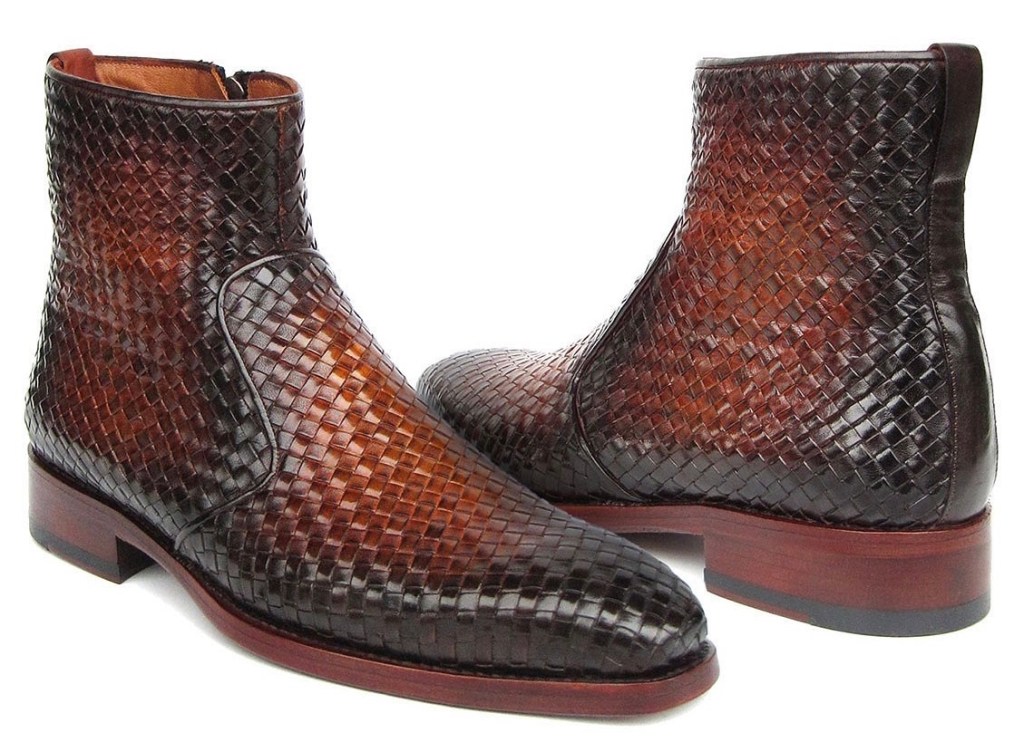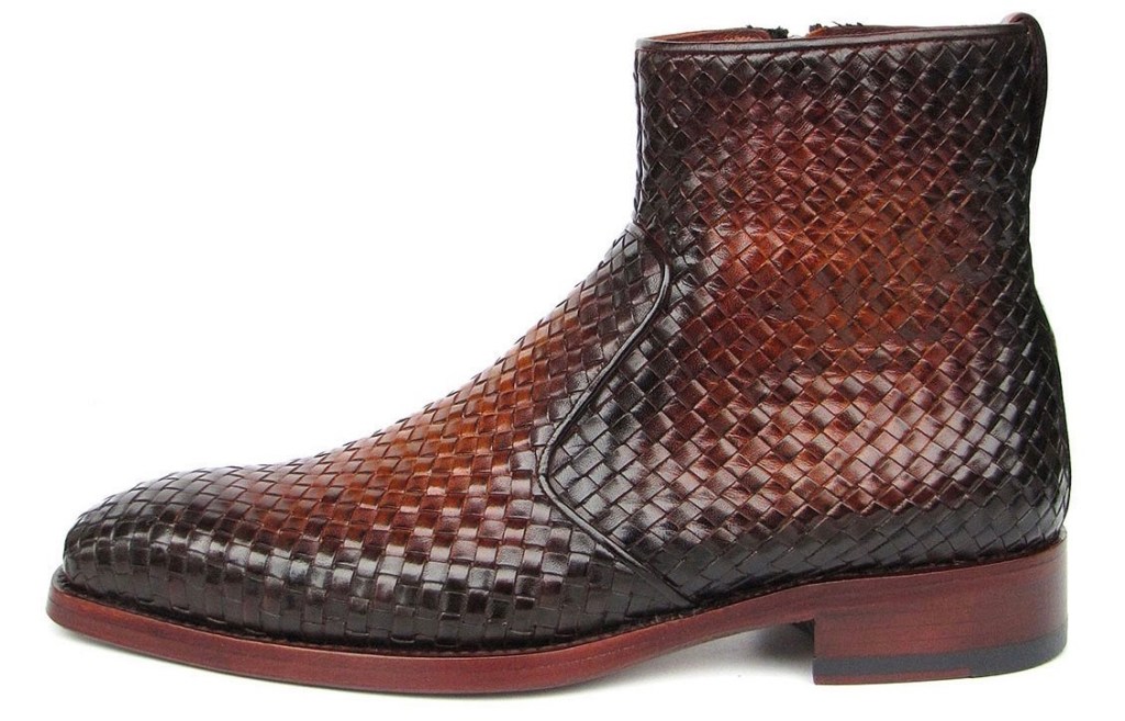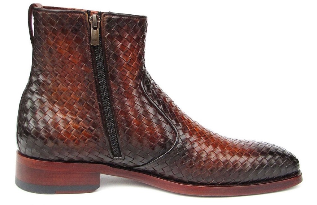 Paul Parkman Brown Burnished Woven Leather Zipper Boots