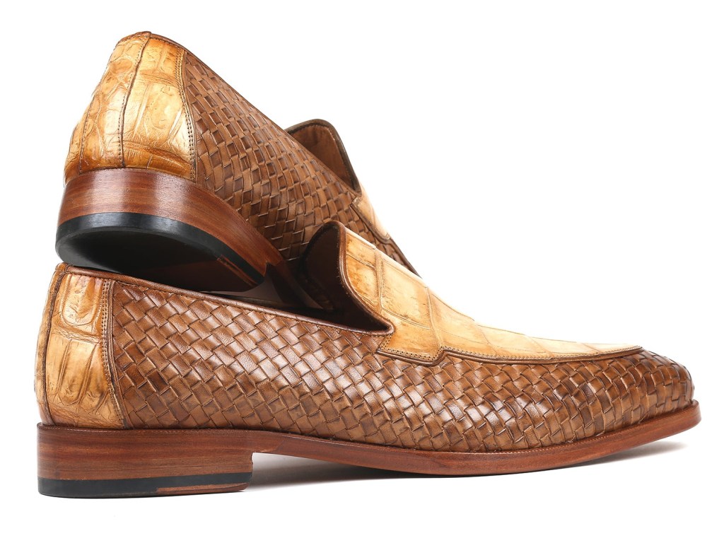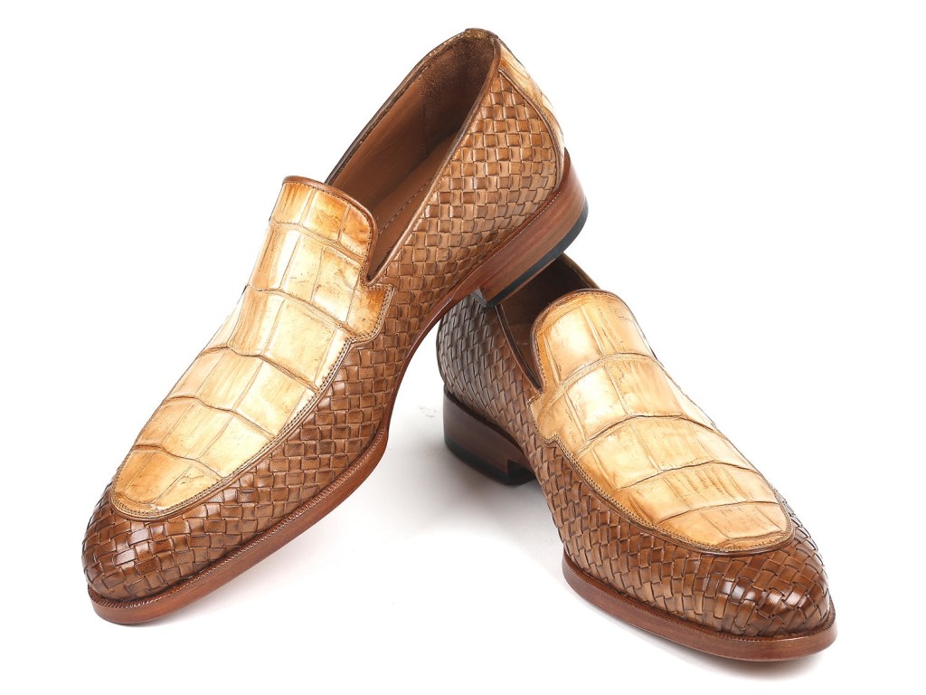Beige Genuine Crocodile & Woven Leather Loafers