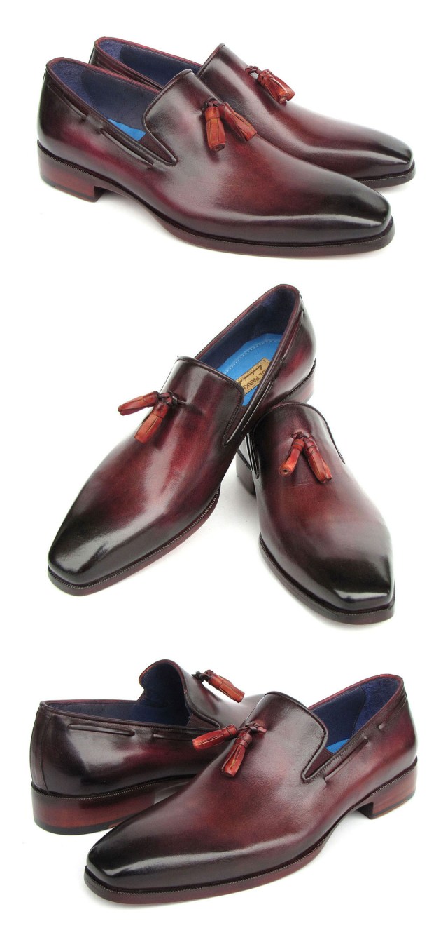 Paul Parkman Men’s Purple Burnished Hand-Painted Tassel Loafers