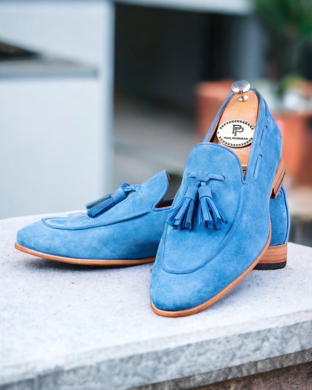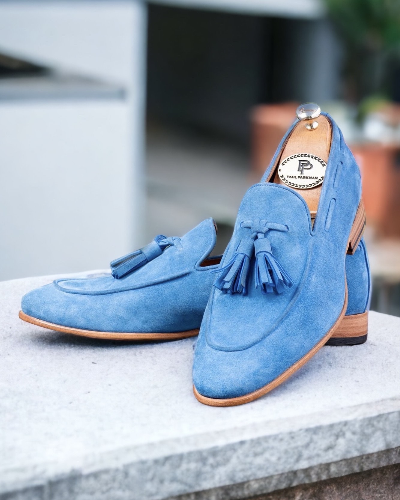 Paul Parkman Men’s Tassel Loafers Blue Suede