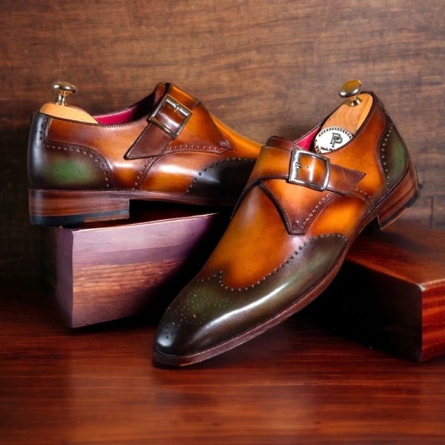 Paul Parkman Single Monkstraps Green & Camel