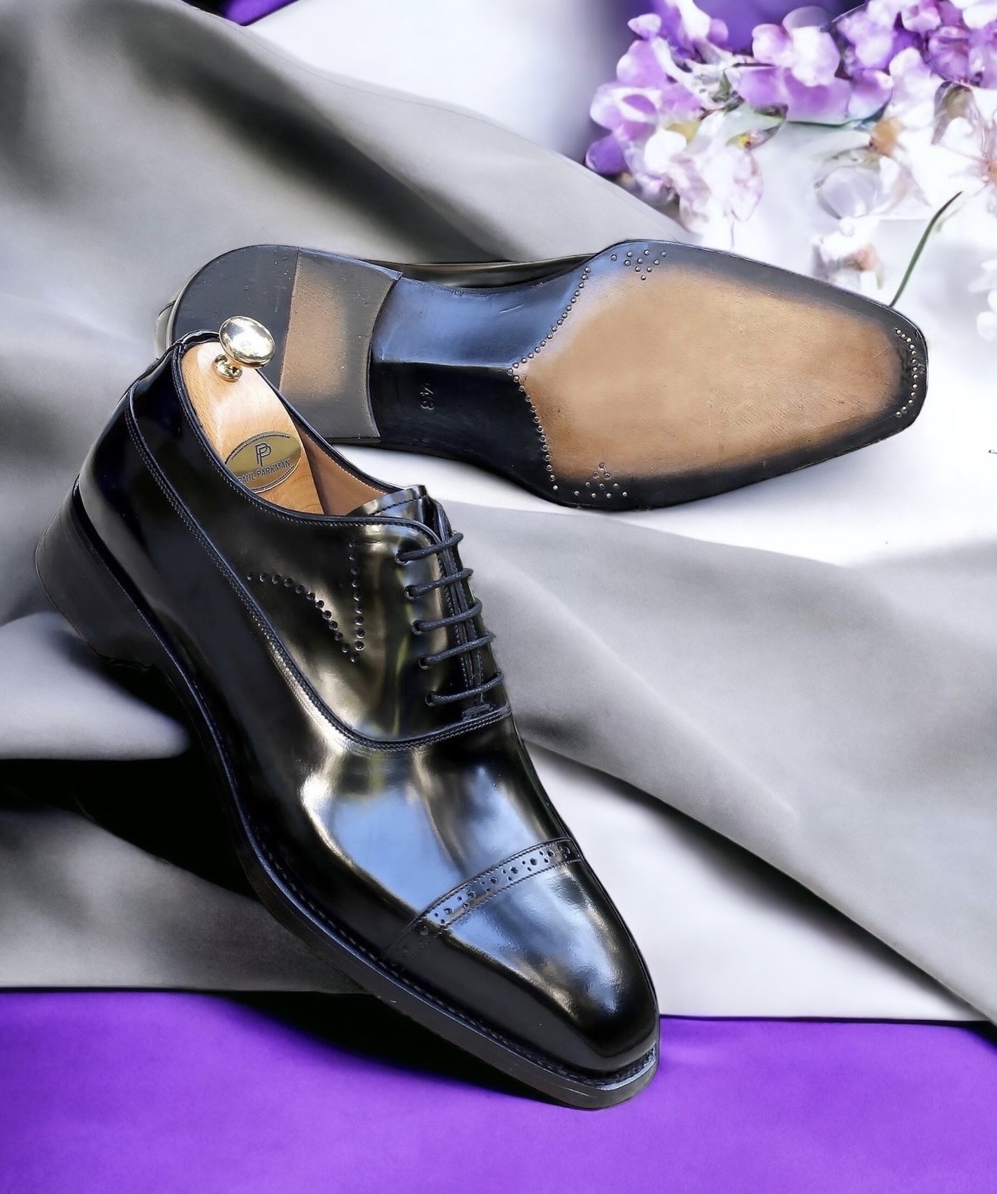 Paul Parkman Goodyear Welted Cap Toe Oxfords Black Polished Leather