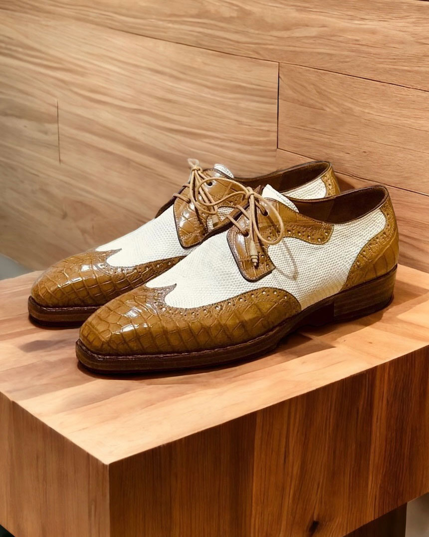 Paul Parkman Genuine Crocodile & Iguana Skin Wingtip Derby Shoes