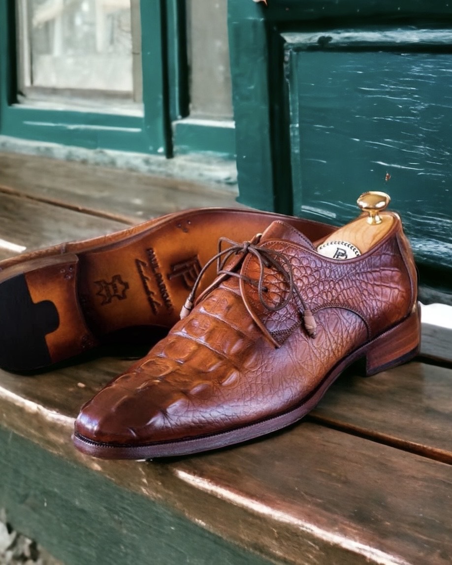 Paul Parkman Brown Crocodile Textured Leather Derby Shoes