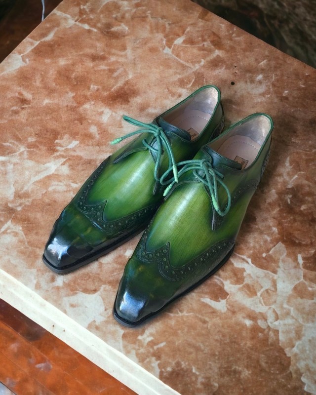 Paul Parkman Goodyear Welted Wingtip Derby Shoes Green