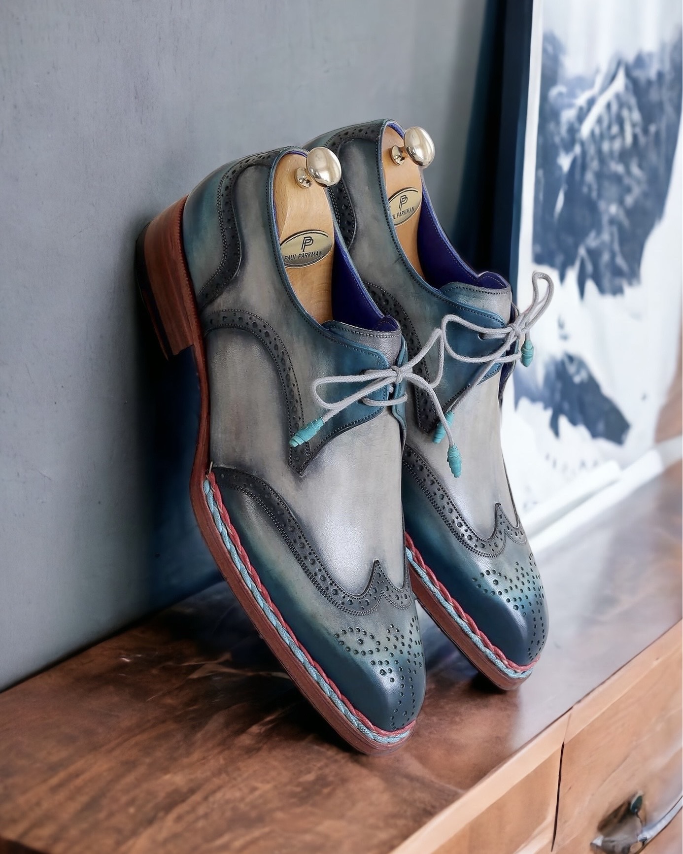 Paul Parkman Norwegian Welted Wingtip Derby Shoes Blue & Grey
