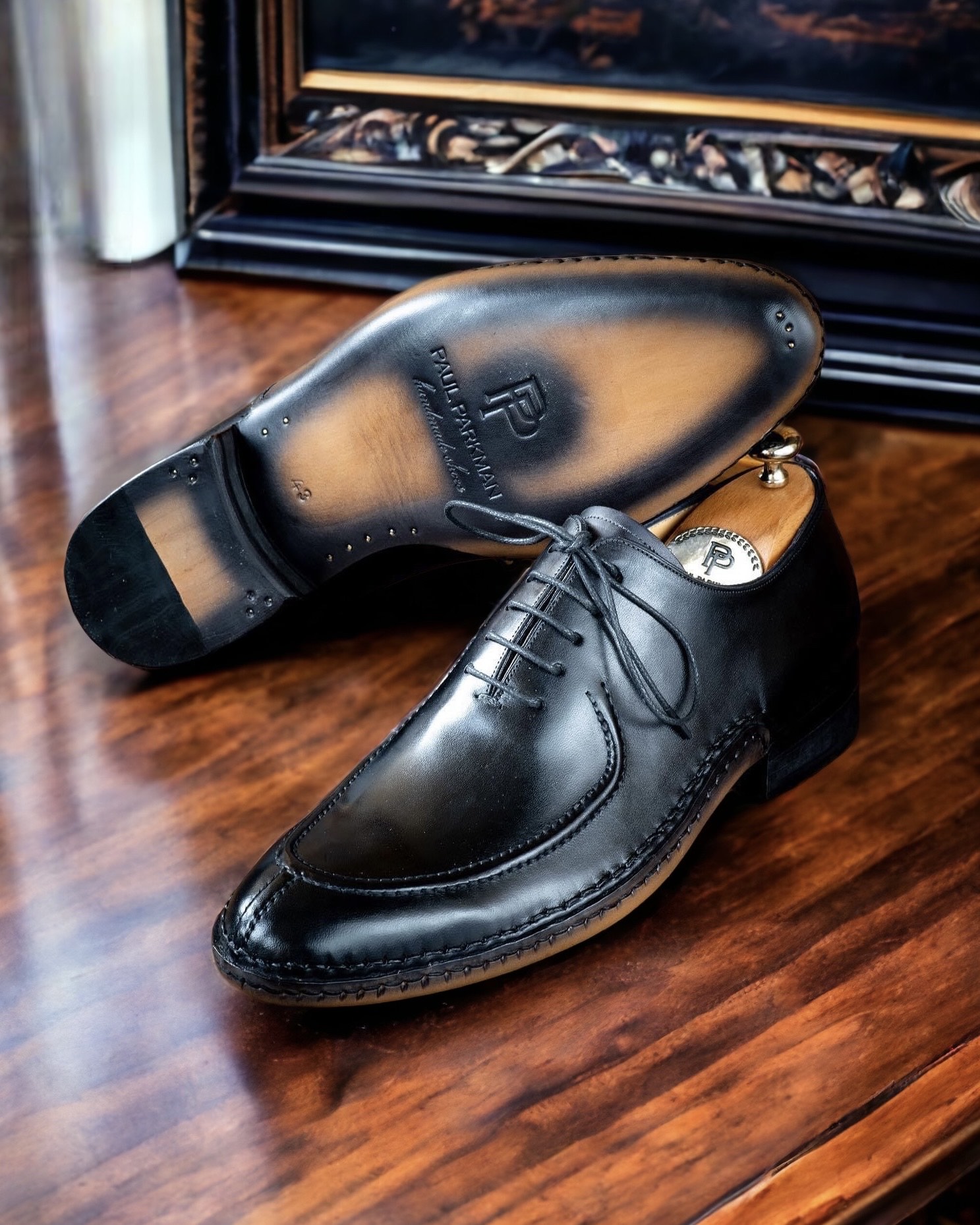 Paul Parkman Opanka Stitched Men’s Split-Toe Black Leather Oxford Shoes