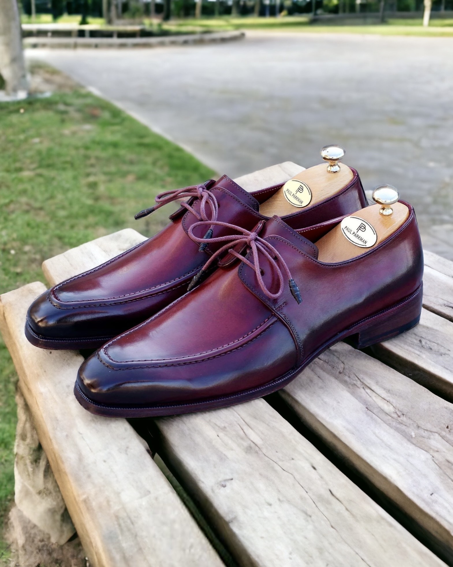 Paul Parkman Bordeaux Leather Apron Derby Shoes For Men