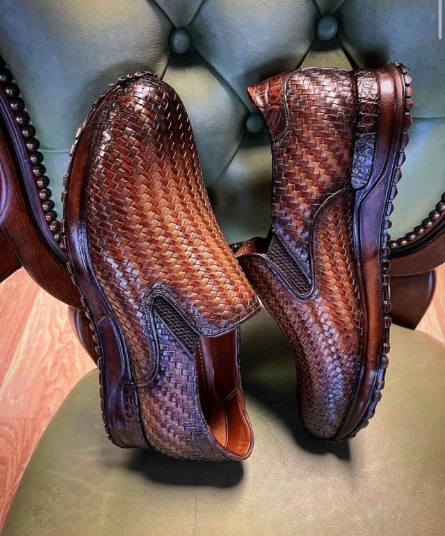 Paul Parkman Men’s Brown Woven Leather Slip-On Sneakers