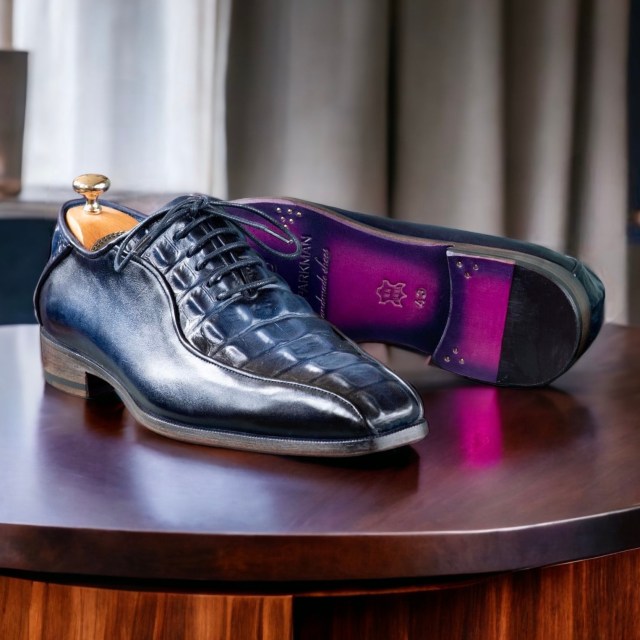 Paul Parkman Navy Croco Textured Leather Bicycle Toe Oxfords