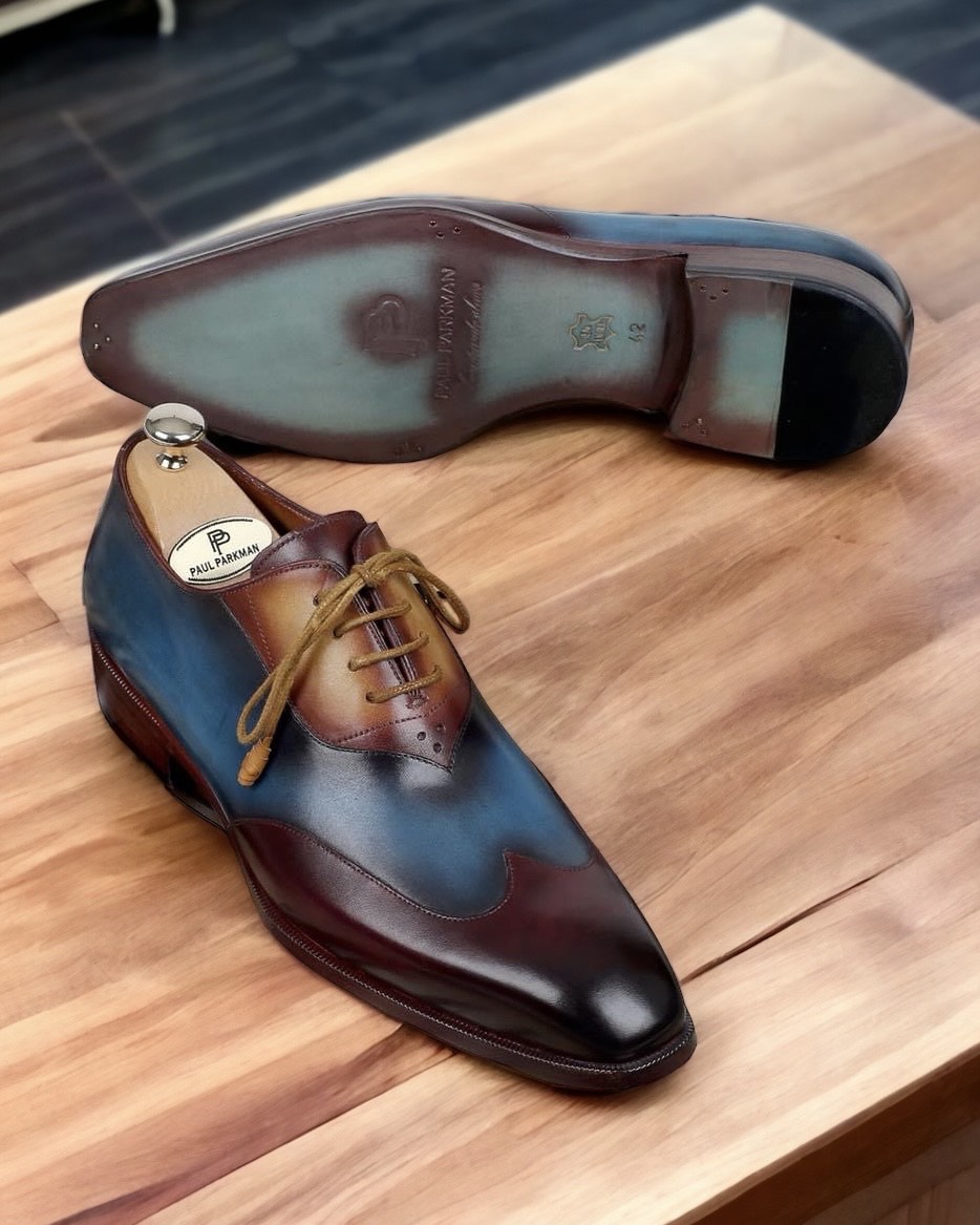 Paul Parkman Three Tone Wingtip Oxfords Bordeaux & Blue & Camel