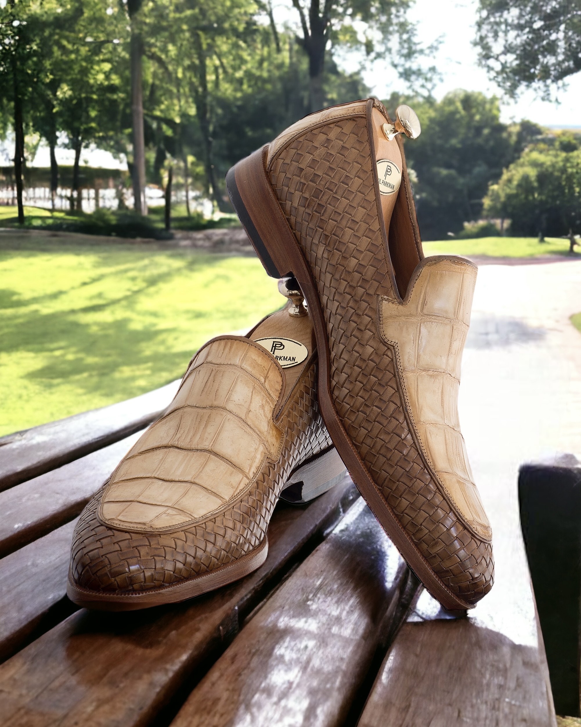 Paul Parkman Men’s Custom-Made Genuine Crocodile Skin & Woven Leather Loafers