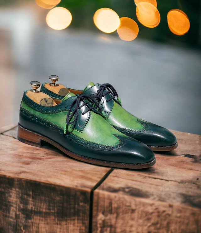 Paul Parkman Men’s Green Dual Tone Wingtip Derby Shoes