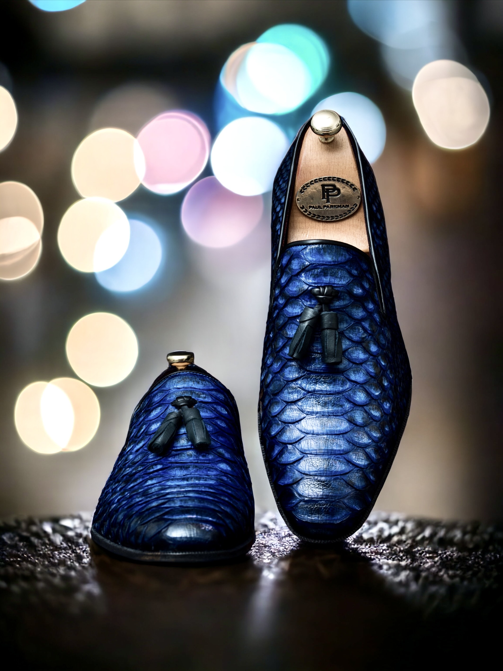 Paul Parkman Blue Genuine Python Skin Tassel Loafers