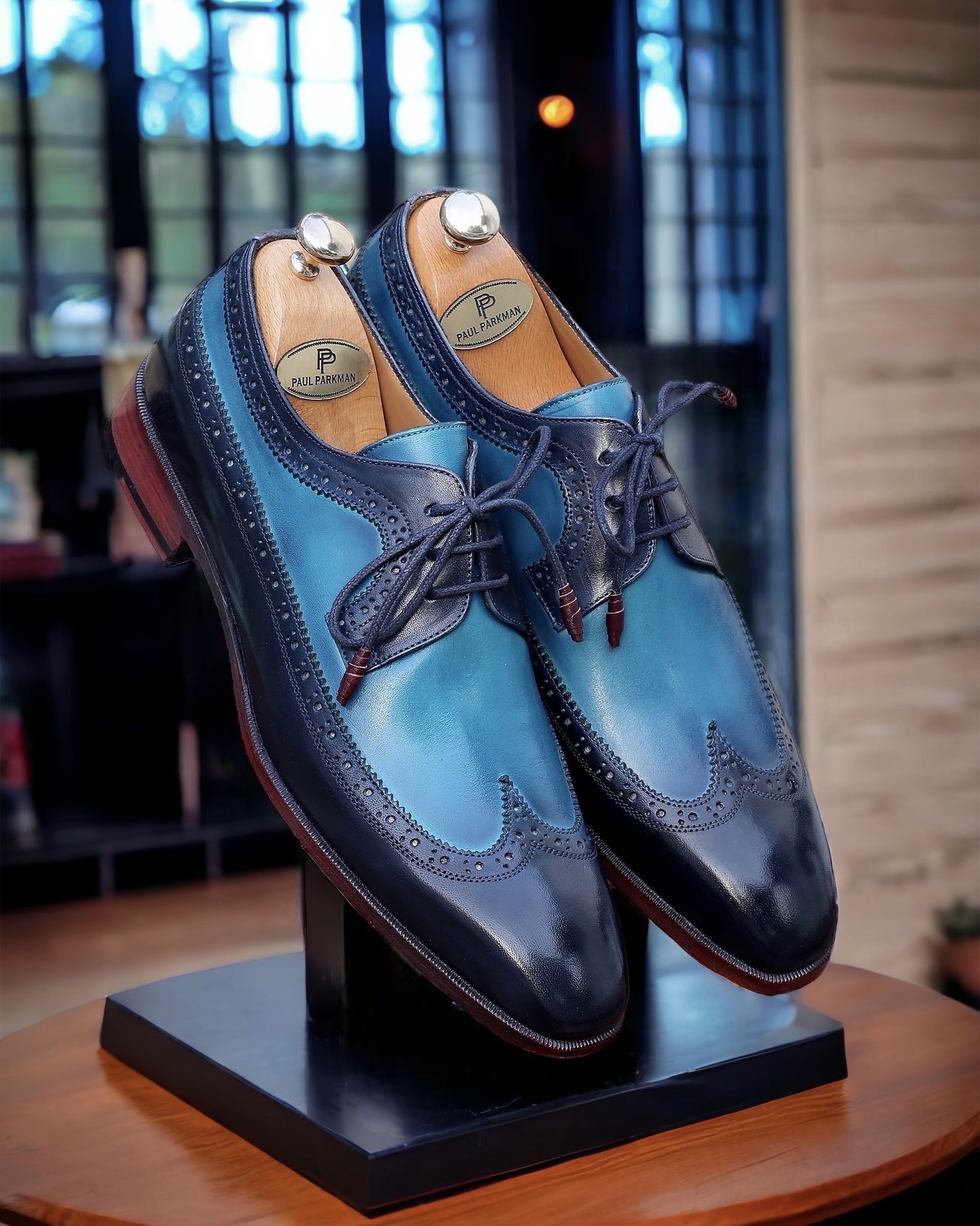 Paul Parkman Men’s Blue Dual Tone Wingtip Derby Shoes