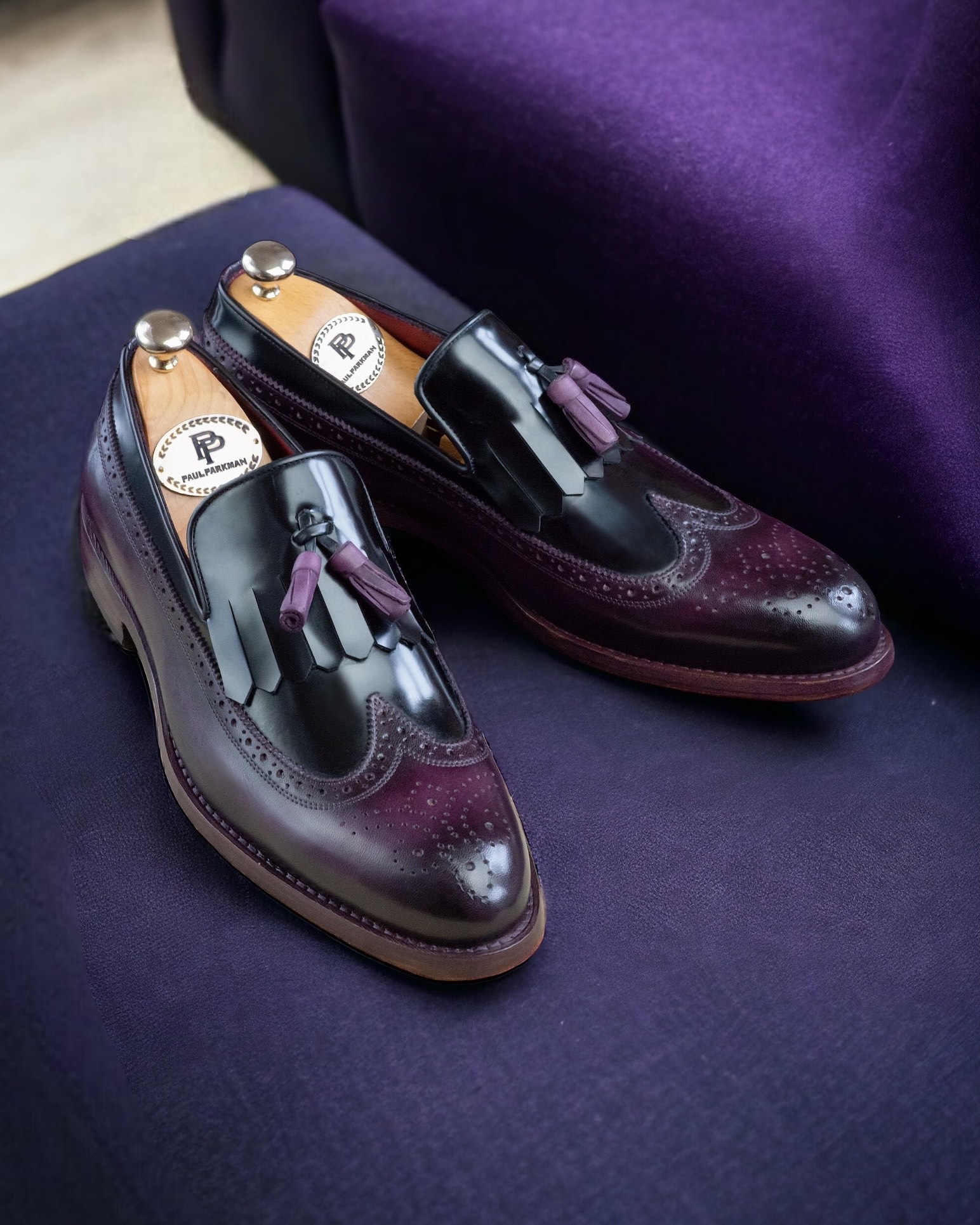 Paul Parkman Kiltie Tassel Loafer Black & Purple