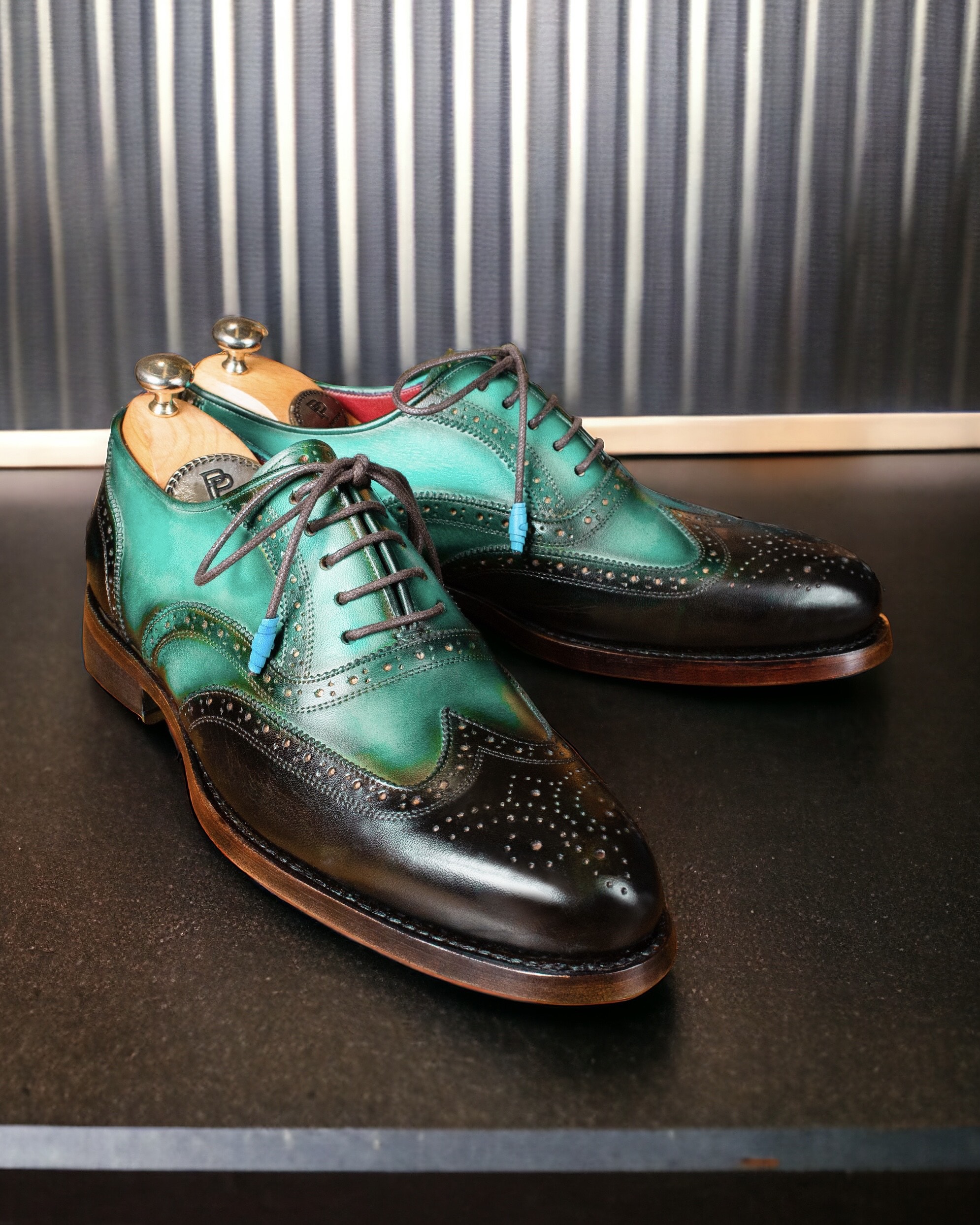 Paul Parkman Brown & Green Wingtip Oxfords Goodyear Welted