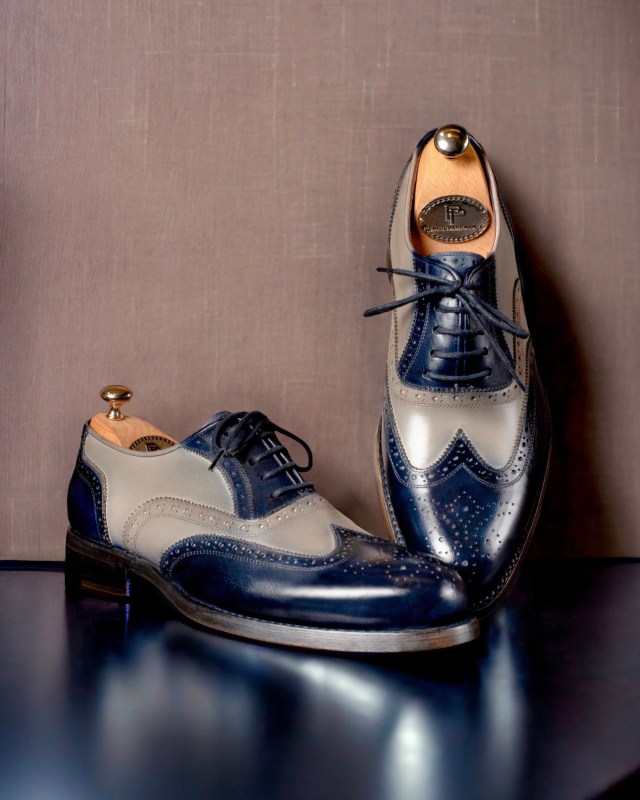 Paul Parkman Navy & Gray Wingtip Oxfords Goodyear Welted