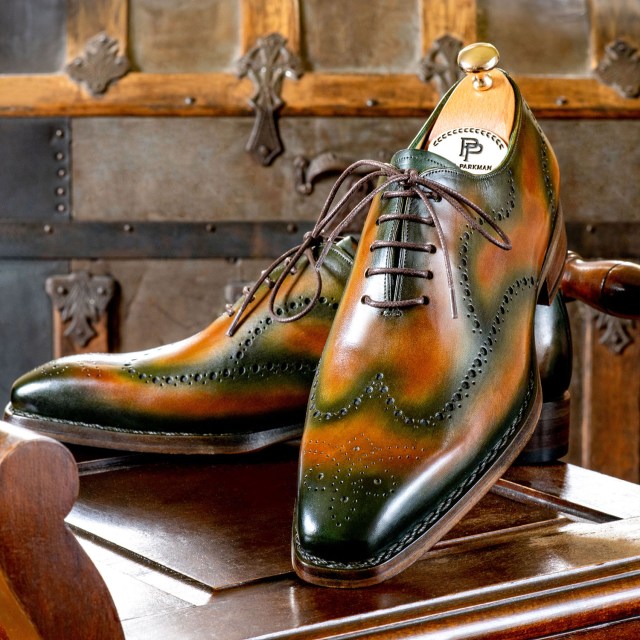 Paul Parkman Men’s Brown & Green Wingtip Oxford Shoes Goodyear Welted