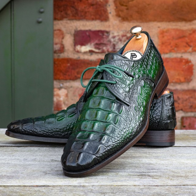 Paul Parkman Green Textured Leather Men’s Derby Shoes