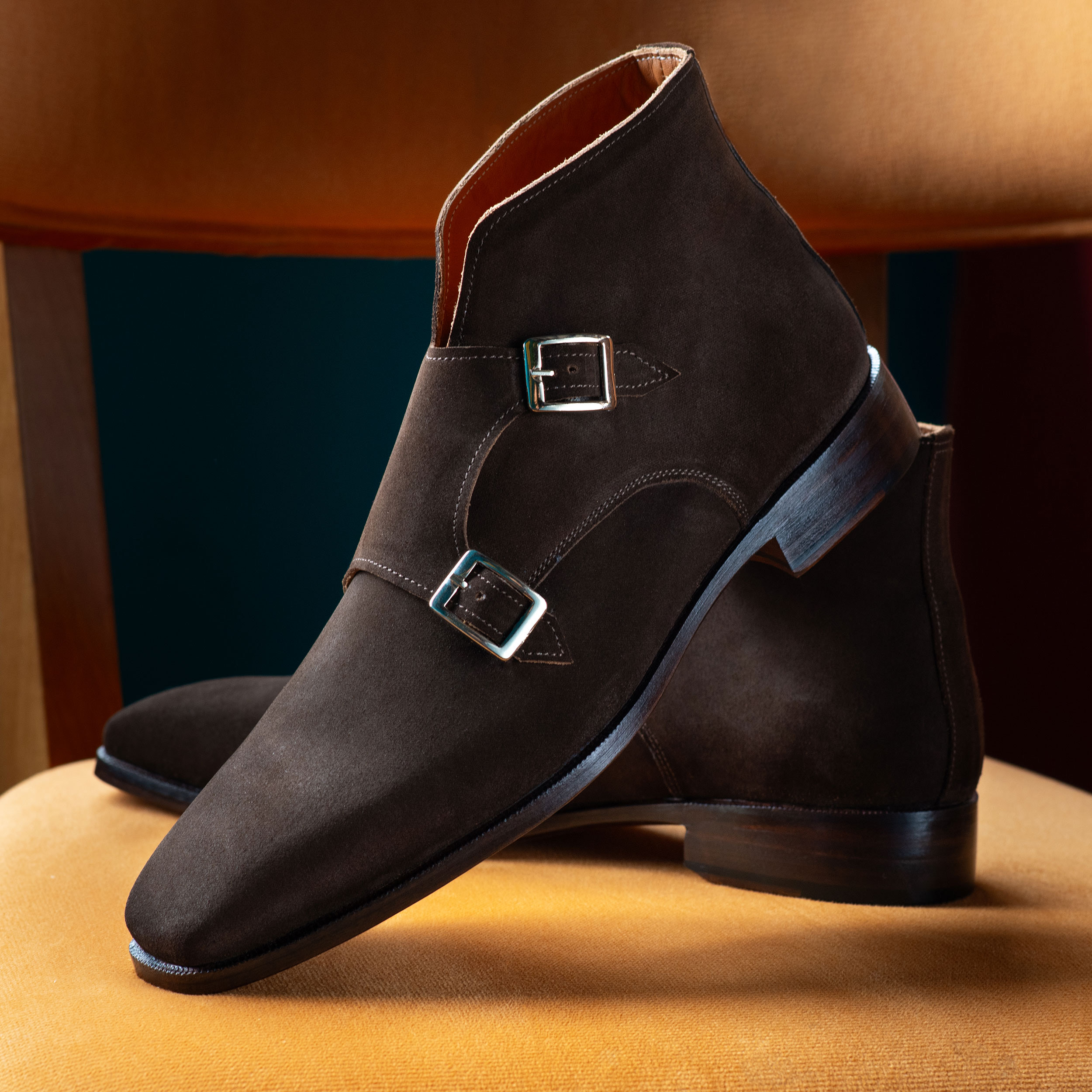 Paul Parkman Double Monkstrap Ankle Boots Brown Suede