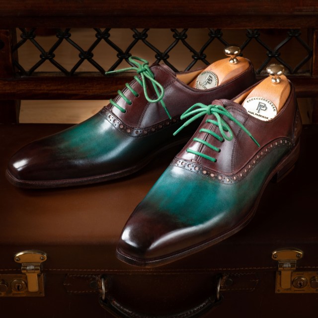 Paul Parkman Men’s Brown & Green Plain Toe Oxford Shoes