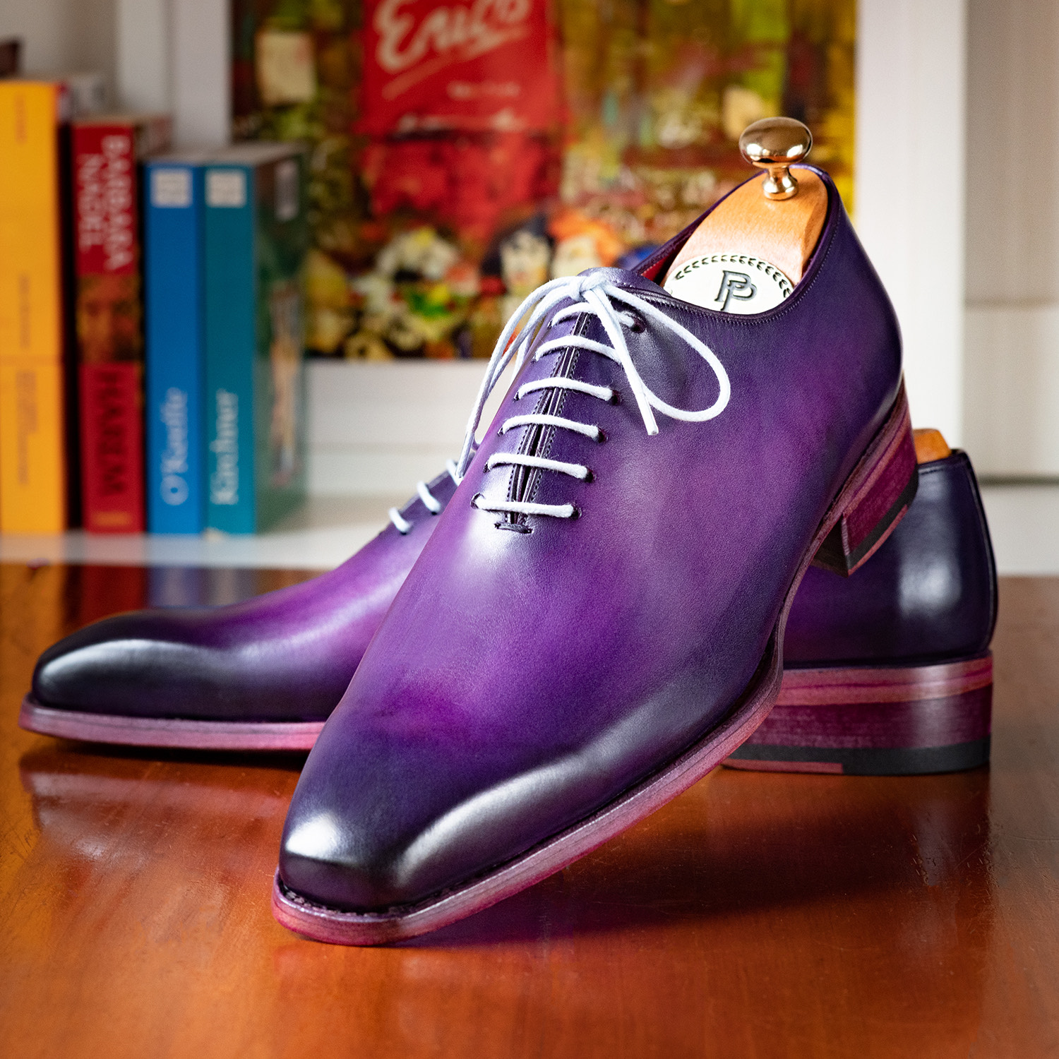 Paul Parkman Men’s Purple Hand-Painted Plain Toe Oxford Shoes